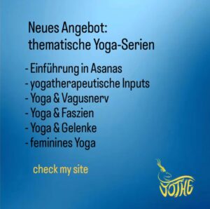 Im November 2025 starten wir mit der 1. Serie thematischen Serie. Eine Serie erstreckt sich über 3 Daten. Themen: Einführung in Asanas, yogatherapeutische Inputs, Yoga & Vagusnerv, Yoga & Faszien, Yoga & Gelenke und feminines Yoga. Diese Angebote richten sich an alle, die Yoga besser kennen lernen, ihre eigene Praxis vertiefen, Beschwerden verbessern möchten oder einfach neugierig sind. Du kannst jeweils eine Serie buchen.